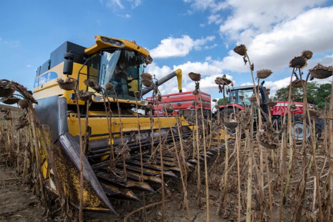 1000 Çiftçi 1000 Bereket programı kapsamında üretim yapan çiftçiler, ayçiçeği hasadına başladı.