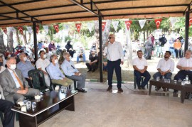 “Ölüsüne saygısı olmayanın dirisine saygısı olmaz düsturuyla 1994 yılından itibaren Ramazan ve Kurban Bayramı arifelerinde mezarlıkları hazır hale getirip belediye ve müftülük hocalarımızla dua ediyoruz. Yağmur yağdı, kar yağdı, kış oldu ama bu geleneklerimizi bırakmadık. Pandemide evden çıkamadınız ama burada hocalarımızla, protokolümüzle dualarımızı yaptık. Mezarların bakımını yaptık ve çiçekler ektik. Belediye SBD TV ile sizlerin evlerinize girdik. Çünkü ölüsüne saygısı olmayanın dirisine saygısı olmaz. 20 yıl önce Belen’den 100 dönüm yer aldık, büyük mezarlık yapıyoruz. Kdz. Ereğli’nin 200 yıllık ihtiyacını karşılayacak. Milli Savunma Bakanlığı’nın verdiği ölçülere göre bir de şehitlik yapıyoruz. Bu mübarek günde bizlerle olduğunuz için teşekkür ediyorum. Mezarlara dikmek için 11 bin fide dağıtıyoruz. Pilav üstü kavurma ikram edeceğiz. Kurban Bayramımız şimdiden hayırlı ve uğurlu olsun. Ailenizle, çocuklarınızla birlikte sağlıklar, mutluluklar diliyorum. İnşallah pandemi olmadan önümüzdeki Ramazan ve Kurban bayramlarında yeniden birlikte oluruz. İyi bayramlar diliyorum.”