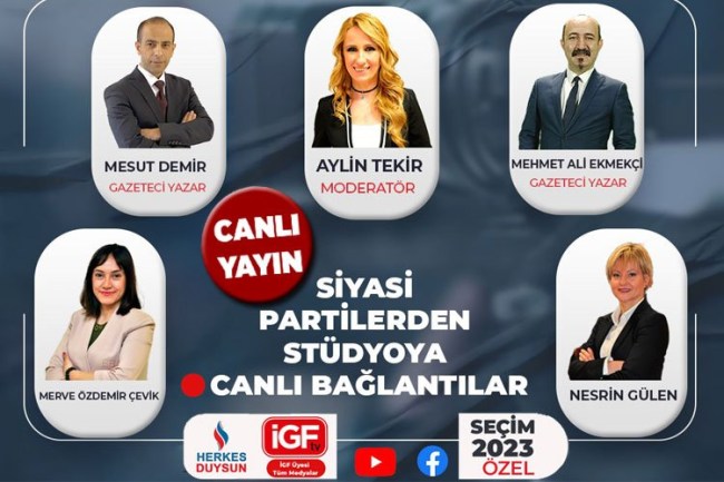 28 Mayıs seçimlerinin heyecanı İGF TV ve Herkes Duysun TV ortak yayınıyla İGF Haber Ajansı üyesi tüm medyalarda kesintisiz sürecek özel canlı yayınla internet ekranlarında taşınıyor.