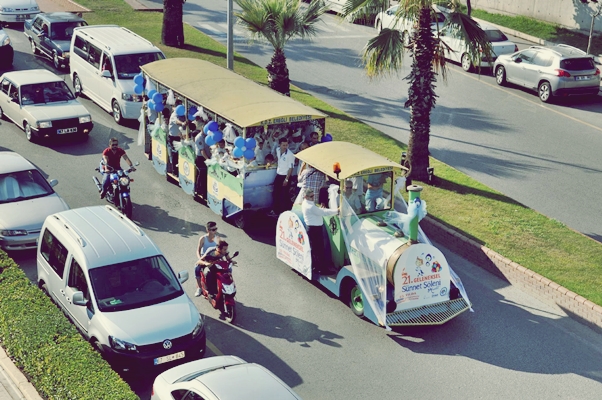 Eski Belediye Binası önünden gezi trenine bildirilen 134 çocuğa, aileleri de belediye ve kendi araçlarıyla eşlik ederek konvoy halinde şehir turu attı.