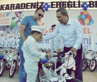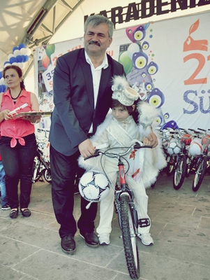 Çocuklara bisiklet ve futbol topu hediye eden Başkan Uysal, ailelerle ve çocuklarla bol bol hatıra fotoğrafı çektirdi.