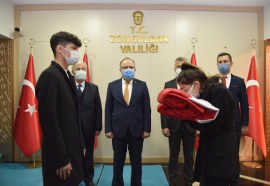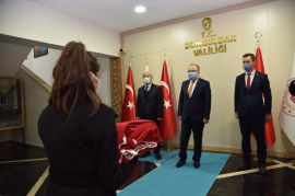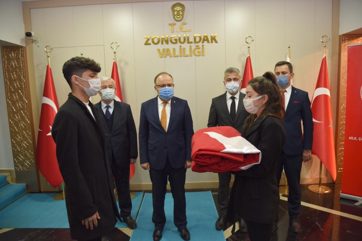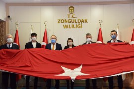 Artvin'den yola çıkan 15 İl'i gezdikten sonra Zonguldak'a ulaşan şanlı Türk bayrağımız Zonguldak Valisi Mustafa Tutulmaz'a emanet edildi..