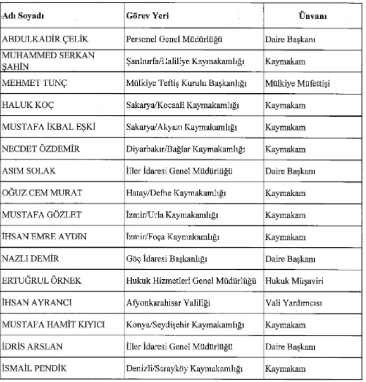 Buna göre aralarında 9'u Kaymakam olan toplamda 16 Mülki İdare Amiri birinci sınıfa yükseltildi.