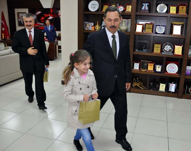 Başkan Uysal, Elanur Mağul’a günün anlam ve önemine ilişkin çeşitli hediyeler takdim ederken ziyarette, Okul Müdürü İsmail Aykılıç ve Sınıf Öğretmeni Ali Duman’da hazır bulundu.