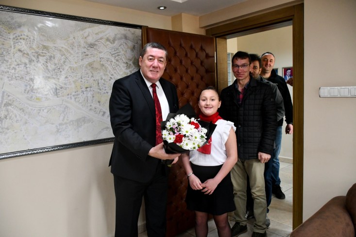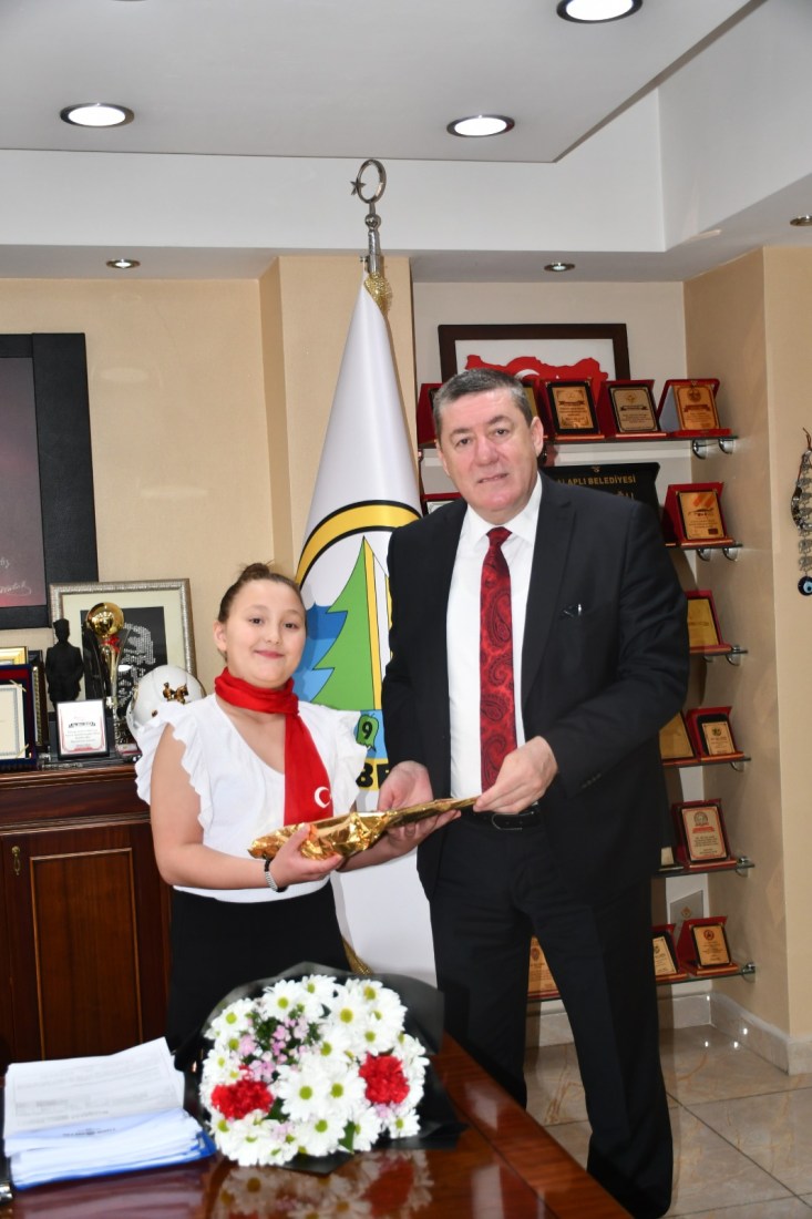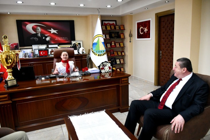 23 Nisan Ulusal Egemenlik ve Çocuk Bayramı dolayısıyla Belediye Başkanlığı koltuğuna Ahmet Zeki Atalay İlkokulu 4/D sınıfı öğrencisi Damla Arslancan oturdu