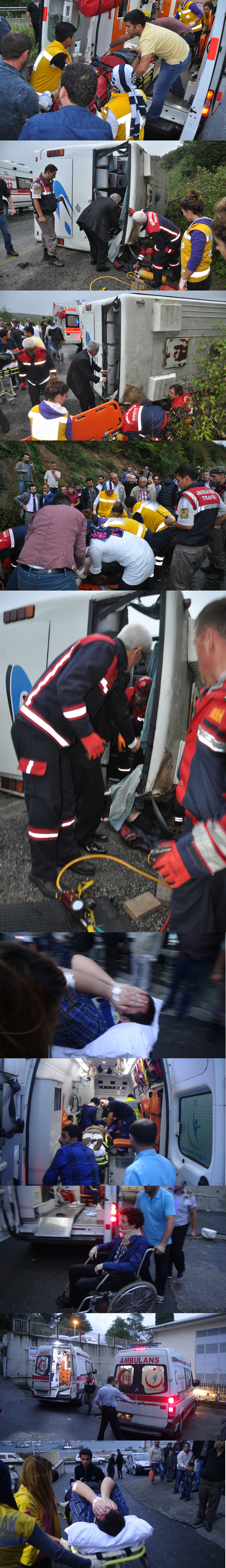 Durumları ağır olan 4öğrenci ise BEÜ Uygulama ve Araytırma Hastanesine kaldırıldı. Diğer yaralılar da özel araçlar ve ambulanslarla Ereğlideki hastanelere götürüldü.