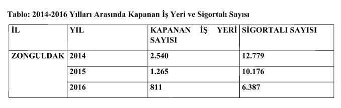 Son 3 yılda Zongudak'ta 4.616 iş yerinin kapandığını belirten Müezzinoğlu ayrıca bu işyerlerinde çalışan 29.342 işçinin de açıkta kaldığını açıkladı..