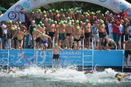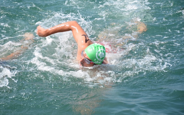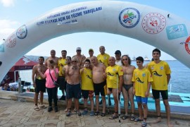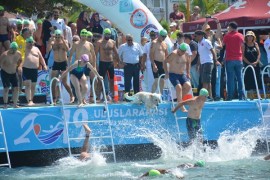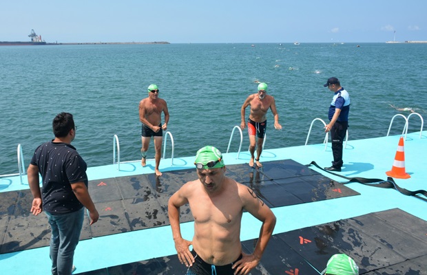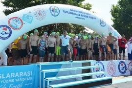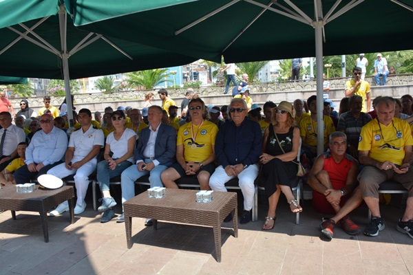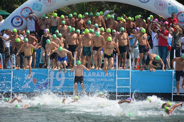 Amfi Tiyatro arkası liman içinde gerçekleştirilen bin 500 ve 3 bin metrelik parkurlardaki açık su yüzme yarışmasına Türkiye’nin değişik bölgelerinden gelen 350 sporcu ile birlikte Eski Devlet Bakanı Kürşad Tüzmen de katıldı.
