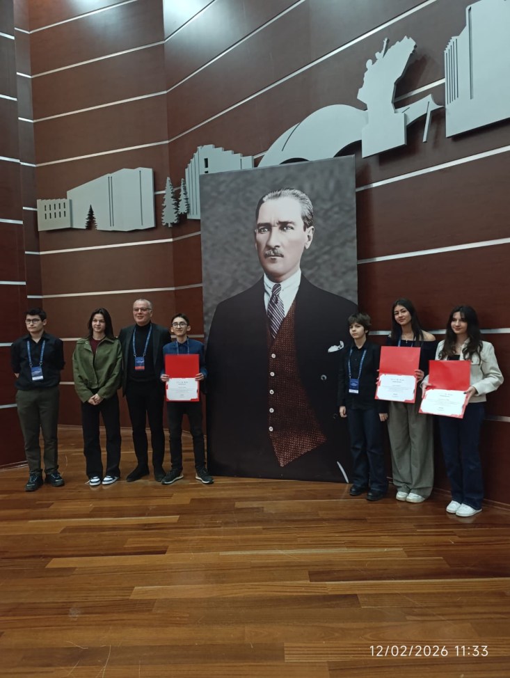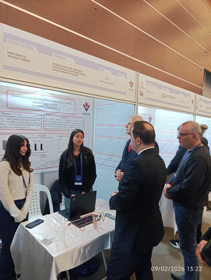Kimya alanında ise öğrencilerimiz Ada Naz Taşkın ve Erva Kurtul, danışman öğretmen Gürol Keserci rehberliğinde hazırladıkları “Fotovoltaik Panel Destekli Elektrokoagülasyonun Tekstil Atıksuyundaki Etkinliği” adlı proje ile Ankara Bölge Üçüncüsü olma başarısı gösterdi.