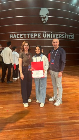 Fizik alanında öğrencimiz Zeynep Malhatun, danışman öğretmeni Adnan Akyüz danışmanlığında hazırladığı “Mikroalg Tabanlı Biyofotovoltaik (BPV) Hücrelerde Elektrot Seçiminin Biyoelektrik Üretimine Etkisi” adlı çalışmasıyla Ankara Bölge Birinciliği elde etti.