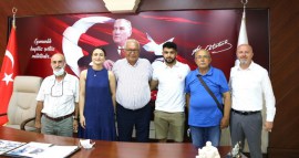 Adana Demirsporlu Almanya doğumlu Ereğlili futbolcu Sinan Kurt eşi ve dedesi ile birlikte Belediye Başkanı Halil Posbıyık’ı ziyaret etti.