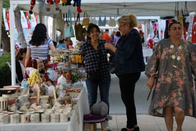 Pazarda kadın kooperatifleri, kadın girişimci ve kadın üreticiler tarafından üretilen takı, örgü, tığ, dikiş, süsleme, boyama, çanta yapımı, örgü bebek, kanaviçe, seramik, çini, mum, doğal taş süsleme, cam, resim ve benzeri alanlarda üretilen birbirinden renkli el emeği ürünleri satışa sunuldu.
