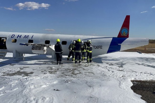 Adıyaman Havalimanı'nda DHMİ tarafından gerçekleştirilen yangın tatbikatı gerçeğini aratmadı.
