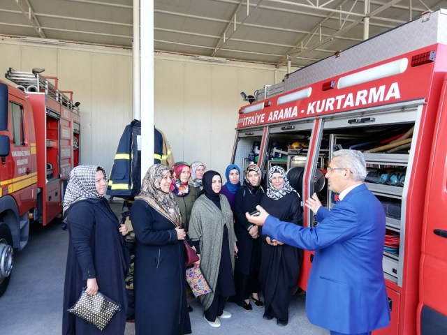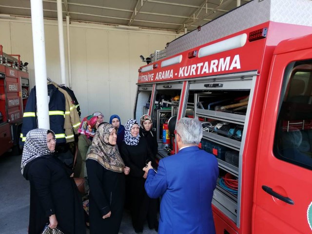 İtfaiye Müdürü Muhammet Ali Ateş Fadime Doğru ve yönetim kurulu üyelerine İtfaiye ile ilgili bilgiler vererek İtfaiye araçlarını gezdirerek araçların ve kullanılan malzemelerin tanıtımını yaptı.,