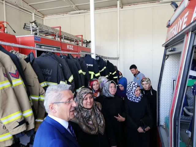 Ak Parti Kdz Ereğli Kadın Kolları Başkanı Fadime Doğru ve yönetim kurulu üyeleri Kdz Ereğli Belediyesi İtfaiye müdürlüğünü ziyaret ederek İtfaiye haftasını kutladılar.