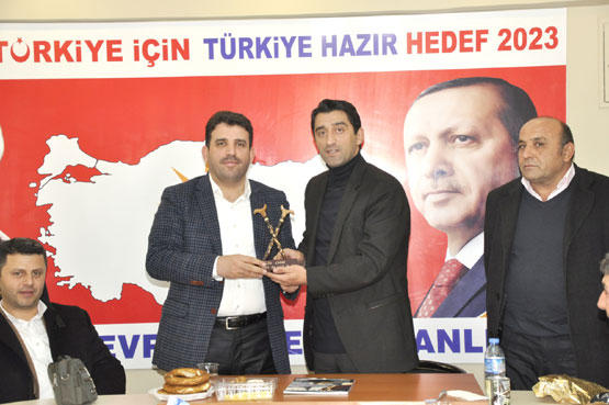 Ziyaretten duyduğu memnuniyeti dile getiren Serdar Kelebek, İlçe Başkanı Fatih Çakıra, Devrekin sembolü olan Devrek Bastonu hediye etti.