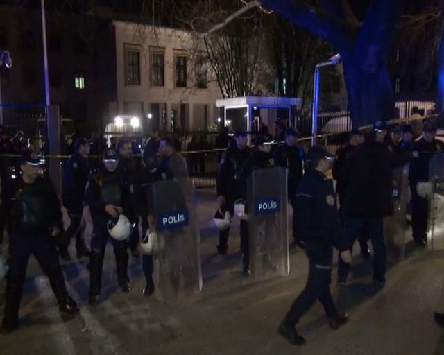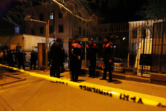 Kızılay'daki Adalet Bakanlığı'nın bahçesine atılan ses bombasının patlaması sonrası olay yerine giden güvenlik güçleri yoğun güvenlik önlemi aldı. Polis, patlamayla ilgili 2 şüpheliyi gözaltına aldı.