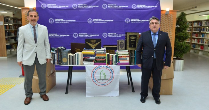 Üniversiteye her daim destek olan Özer’e teşekkürlerini sunan Rektör Özölçer, Kütüphane ve Dök. Daire Başkanı Osman Demir’e, bağışlanan kitapların katalog kayıtlarının yapılarak bir an önce okuyucularla buluşturulması talimatını verdi.