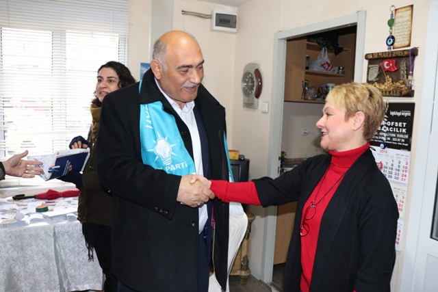 Erol Şahin ve ekibi öğleden sonra da Orhanlar Mahallesine dört koldan girerek çalmadık kapı, sıkmadık el bırakmadılar.