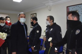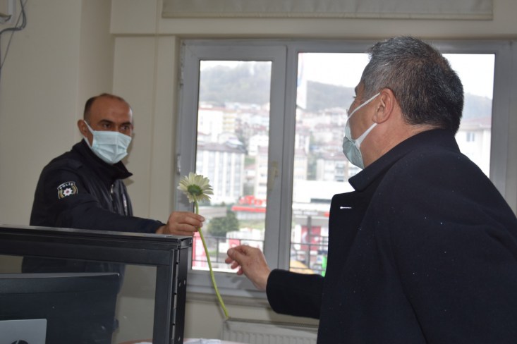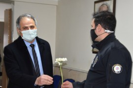 AK Parti heyeti tarafından ilk ziyaret, Polis Haftası münasebetiyle Kdz. Ereğli İlçe Emniyet Müdürlüğü’ne yapıldı. Ziyarette Emniyet Müdürlüğü binasındaki birimler gezilerek, bu birimlerde çalışan polislere karanfil takdim edilip Polis Haftaları kutlandı. Başkan Bozkurt emniyet mensuplarıyla sohbet ederek, zorlu pandemisürecinde gösterdikleri özveriden dolayı teşekkür etti, görevlerinde başarılar diledi. Ziyarette Kdz. Ereğli İlçe Emniyet Müdürü Hakan Çelik de Başkan Bozkurt ve beraberindeki partililere eşlik ederek, birimler hakkında bilgi verdi. Emniyette çalışan polisleri ziyaretinardından AK Parti heyeti, İlçe Emniyet Müdürü Hakan Çelik’i makamında ziyaret etti. Ziyarette Bozkurt, bu süreçte yürüttükleri çalışmalardan dolayı Çelik’i tebrik ederek, görevlerinde başarılar diledi.