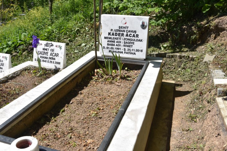 AK Parti Kdz. Ereğli İlçe Başkanı Saffet Bozkurt; şehit Kader Acar’ın yanı sıra annesi Şadiye Acar ve babası Nimet Acar’ın kabirlerinin de bulunduğu mezarlıkta incelemeler yaparak, mezarlığa ulaşımı sağlayan ve yıllar içinde yıpranan merdiven ile mezarlık alanının iyileştirilmesi için bayramdan hemen sonra gerekli çalışmalara başlayacaklarını bildirdi.