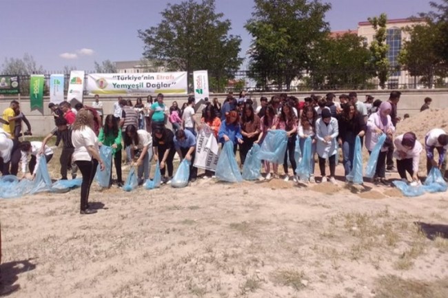 Erozyonla mücadele ve Çevreye duyarlılığa dikkat çekmek için Çeşitli Okullardan Torbalarla getirilen topraklar park yapılmasını istenilen Aksaray Anadolu İmam Hatip Okulu önündeki Boşluğa dökülerek kararlılık sergilendi