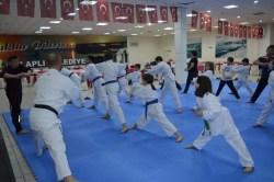 15 gündür düğün salonunda antrenman yapan karateciler, Zonguldak'ta düzenlenen ilkokullararası kata şampiyonasına katıldı.