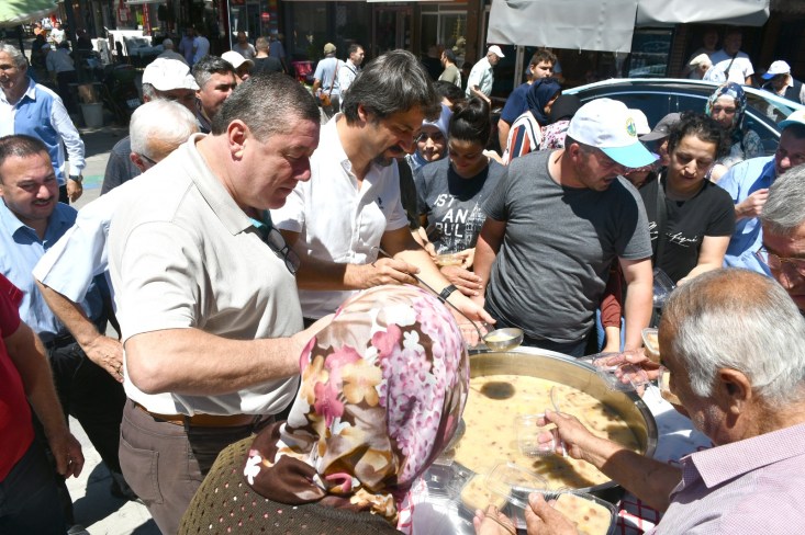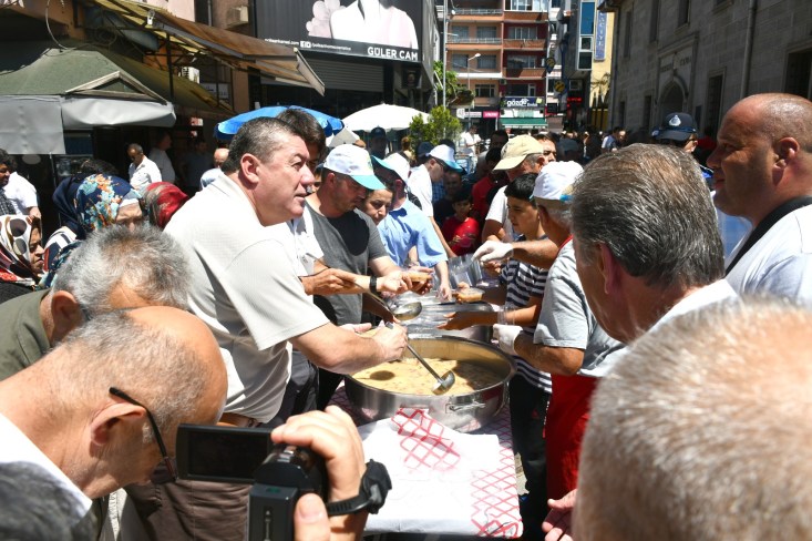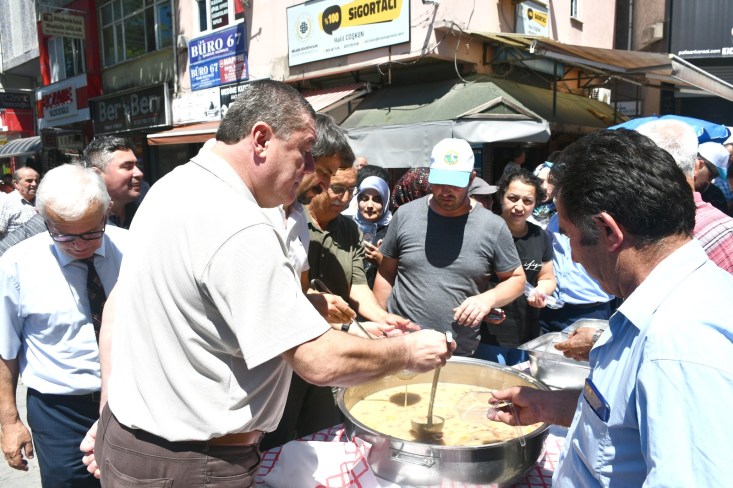 Aşure gününün, paylaşmanın, dayanışmanın, birlikteliğin ve sevginin ifadesi, bolluk ve bereketin simgesi olduğunu ifade eden Alaplı Belediye Başkanı Nuri Tekin, ‘Bugün burada düzenlediğimiz aşure günü etkinliği ile vatandaşlarımızla bir araya gelmenin mutluluğunu yaşıyoruz. Vatandaşlarımızla birlikte paylaşmanın ve birlikteliğin mutluluğunu yaşıyoruz. Katılan herkesten Allah razı olsun, Allah birlik beraberliğimizi bozmasın, Allah niyetimizi kabul etsin’ dedi.
