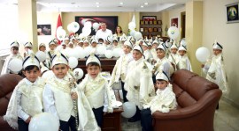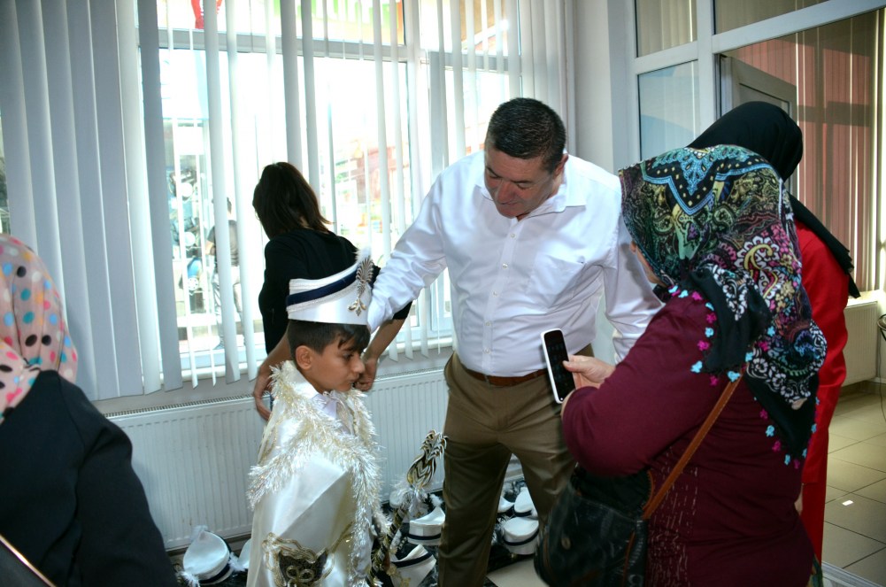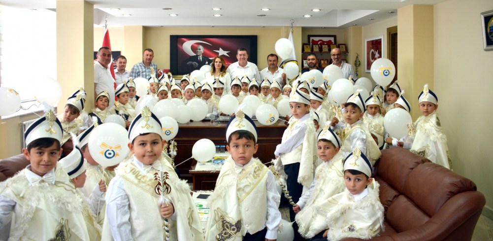 Sabah sünnet çocuklarının giyindirilmesiyle başlayan 20. Geleneksel Sünnet Şöleni’nde, sünnet çocukları ilk olarak Belediye Başkanı Nuri Tekin’i ziyaret etti. Çocukları makamında ağırlayan Başkan Tekin, bir süre sohbet ederek, hatıra fotoğrafı çektirdi.