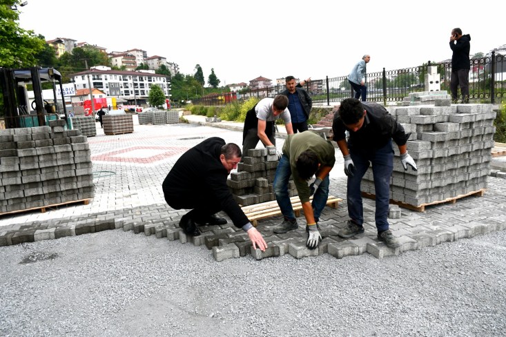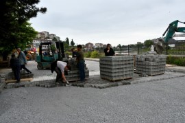 Alaplı Belediyesi Karşıyaka Mahallesi Fiskomar yolunda altyapı çalışmalarının ardından kilit parke çalışmalarına başladı.