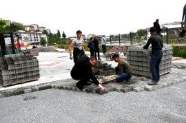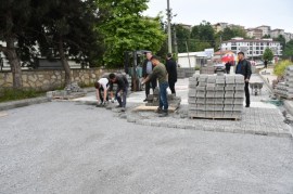 Tekin, Karşıyaka Mahallesi fiskomar yolunda altyapı ve kaldırım çalışmalarının ardından yaklaşık 1 kilometre kilit parke yapım çalışmaları başladığını söyledi.