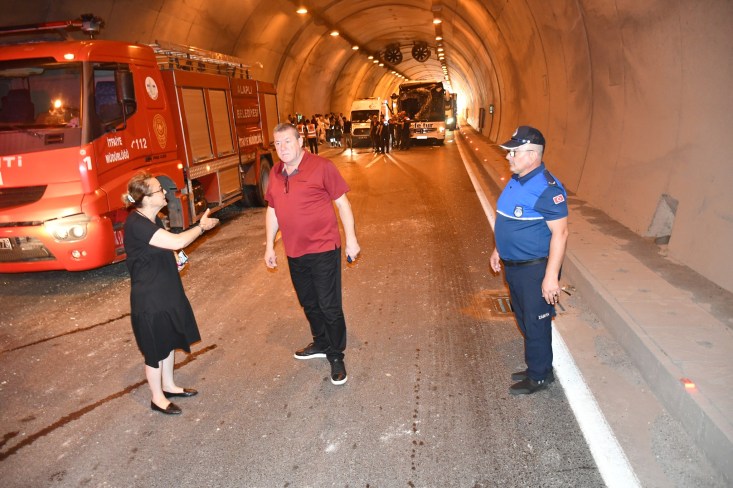 Yetkililerden bilgi alan Başkan Tekin, kazada can kaybının yaşanmamasının büyük şans olduğu dile getirerek; geçmiş olsun dileklerini iletirken, tünellerin trafiğe kapatıldığı öğrenildi.