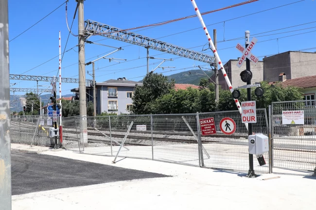 Araç geçişi için hemzemin geçide kauçuk zemin montajlandı, uyarıcı ve güvenlik sistemleri ile kulübe montajı tamamlandı. Ayrıca geçit etrafındaki kaldırım ve bordür imalatları, sıcak asfalt serim işlemleri de son buldu.