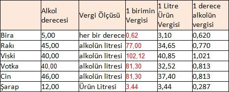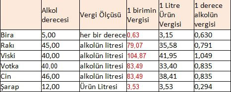 Hürriyet gazetesinin haberine göre, Ocak-Haziran döneminde Üretici Fiyat Endeksindeki yüzde 2.46lık artışla, dünden itibaren 2 litreyi geçmeyen kaplardaki rakıdan alınan ÖTV 79 liradan 81 liraya; şaraptan alınan ÖTV 3.53 liradan 3.61 liraya; biradan alınan ÖTV ise 0,63 kuruştan 0,64 kuruşa yükseldi. Alkol derecesi hacim itibariyle yüzde 22den fazla olanlar içinse 104,87 liradan 107,44 liraya çıktı.