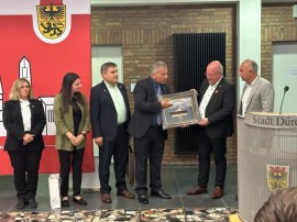 Düren’de devam eden festival nedeniyle Kdz. Ereğli standı açan Belediye Meclis Üyeleri tanıtım faaliyetlerini sürdürürken, delegasyon toplantısında Düren Belediye Başkanı Frank Peter Ullrich ve Düren Belediyesi önceki dönem Belediye Başkanı Paul Laru’yla bir araya gelerek Başkan Posbıyık’ın hediyelerini takdim ettiler.