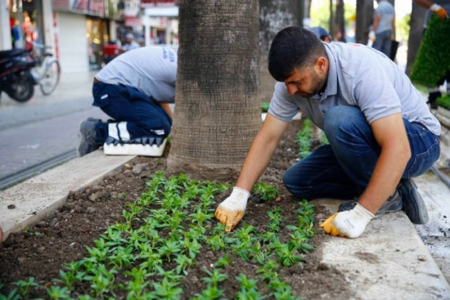 Antalya Büyükşehir Belediyesi, yaz aylarının gelmesiyle birlikte cadde, refüj ve parkları rengarenk çiçeklerle donatıyor. Peyzaj çalışmaları kapsamında 300 bin çiçek toprakla buluşturdu.