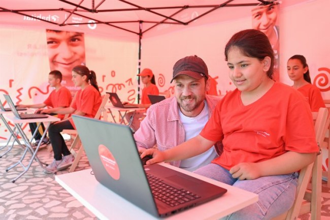 Aras Bulut İynemli, Türkiye Vodafone Vakfı'nın Habitat Derneği iş birliğiyle sürdürdüğü "Yarını Kodlayanlar" projesi için Kahramanmaraş'ta çocuklarla buluştu.
