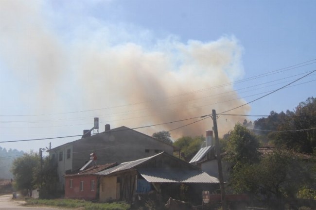 Bilecik'in Pazaryeri ilçesinde bir arazide bilinmeyen bir nedenle çıkan yangın ormanlık alana sıçramadan 2 saatlik çalışmayla söndürüldü.