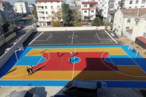 Kocaeli Büyükşehir Belediyesi, Körfez ilçesinde bulunan Med Marine Tuncer Şen Fen Lisesine Potasız Okul Kalmasın projesi kapsamında basketbol ve ..