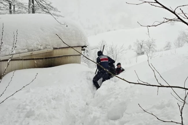 Artvin'de kar nedeniyle evinde mahsur kalan yaşlı vatandaşı, Jandarma, Özel İdare ekipleri ile köylüler kurtardı.