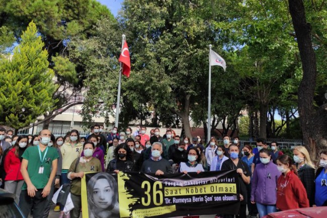 ANKARA (İGFA) - Türk Tabipleri Birliği (TTB) Asistan ve Genç Uzman Hekimler Kolu’nun çağrısıyla sağlık çalışanları, Ankara Şehir Hastanesi Kadın Doğum Kliniği’nde görev yapan asistan hekim Dr. Rümeysa Berin Şen’in nöbet ertesi geçirdiği trafik kazasında yaşamını yitirmesi üzerine 25 Ekim 2021 günü birçok ilde basın açıklamaları düzenledi.