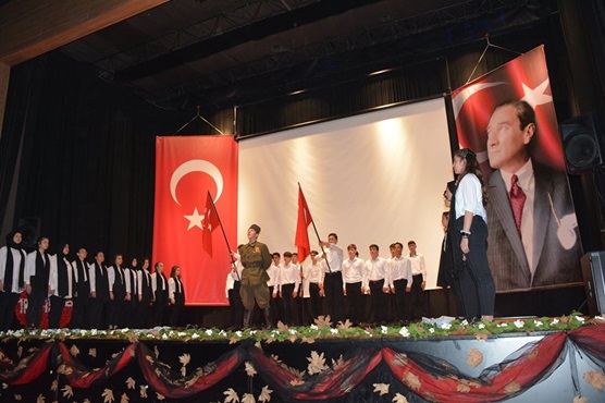 İMKB Atatürk Ortaokulu’nun organizesi ile yürütülen programda, Büyük Önder’in görüntüleri ve konuşmaları yer alan sinevizyon gösterimi sunuldu. Burada da Saygı duruşunun ardından bir grup okul öğrencisinin “işaret dili eşliğinde” İstiklal Marşı okundu. Okul müdürü Hüseyin Arslan’ın günün anlam ve önemini belirttiği konuşmanın ardından, “Sendedir Atatürk” isimli Oratoryo Sunumu gerçekleştirildi.