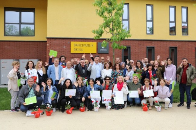 Türkiye'nin ilk meyve bahçesi ve fidanlığı özelliğini taşıyan Büyükdere Atatürk Fidanlığı içerisindeki Bahçıvanlık Okulu'nda dün tarihi bir mezuniyet yaşandı. Mart ayında başlayan ve tamamen ücretsiz olan teorik ve uygulamalı eğitim programıyla 37 kursiyer ‘Bahçıvanlık Eğitimi'ni tamamladı. 9 haftada 186 ders saatinden oluşan eğitim, saha gezileri ve uygulama derslerinden oluştu. Eğitimlerini pratiğe dönüştüren katılımcılar, Milli Eğitim Bakanlığı onaylı ‘Kurs Bitirme Belgesi'ni aldılar.