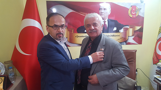 Yaklaşık 1 saat süren ziyaret sonrası Başkan Karakulak tarafından, Başkan Günay’a Avrupa Zonguldaklılar Derneği rozeti takıldı..