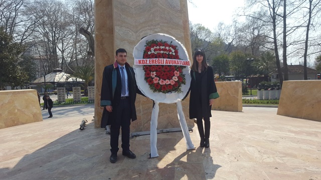 Kdz.Ereğli'de 5 Nisan Avukatlar Günü nedeniyle tören düzenlendi. Saygı duruşu ve İstiklal Marşı ile başlayan törenin sonunda Atatürk anıtına çelenk koyuldu..