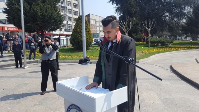 Tören sırasında Karadeniz Ereğli Hukukçular Derneği Başkanı Eren Demircan bir konuşma yaparak; "Adaletten söz edebilmenin ön şartı hukukun üstünlüğüdür", dedi.