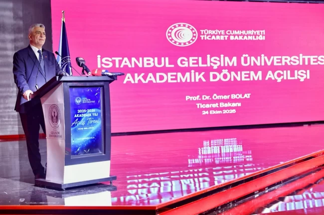 İSTANBUL (İGFA) - Ticaret Bakanı Ömer Bolat, İstanbul Gelişim Üniversitesi 2025-2026 Akademik Yıl Açılış Töreninde yaptığı konuşmada, Türkiye ekonomisi, eğitim yatırımları, Filistin meselesi ve dijital dönüşüm konularında önemli değerlendirmelerde bulundu.