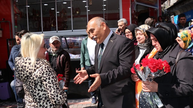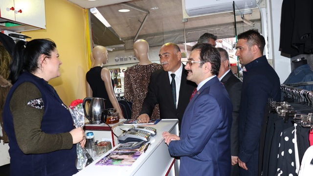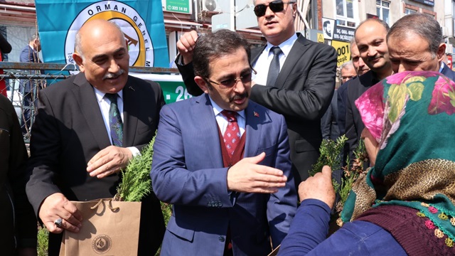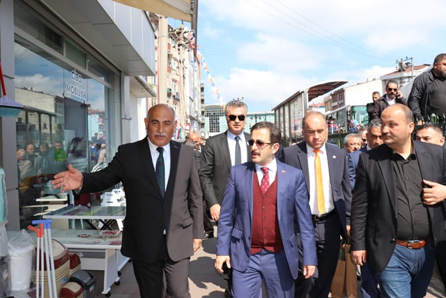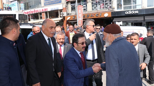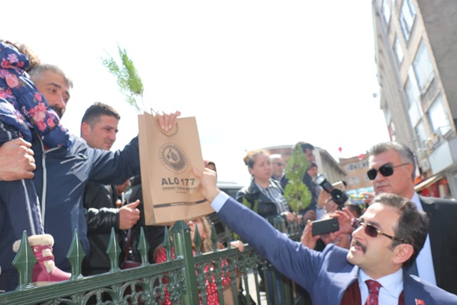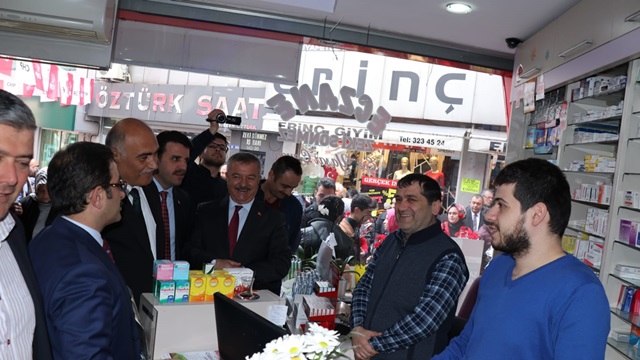 Tarım ve Orman Bakan Yardımcısı Aksu toplantıdan sonra Ziraat Odası eski İtfaiye Caddesinde Belediye Başkanı Adayı Erol Şahin ile birlikte vatandaşlara fidan dağıttıktan sonra şehir merkezinde esnaf ziyaretinde bulundular.