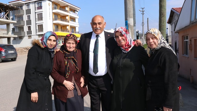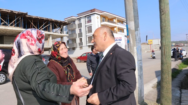 Erol Şahin, belediye meclisi üyesi adayları ve partilileri ile birlikte Kaynarca konutlarında tüm kapıları tek tek çalarak vatandaşın elini sıktı ve destek istedi.