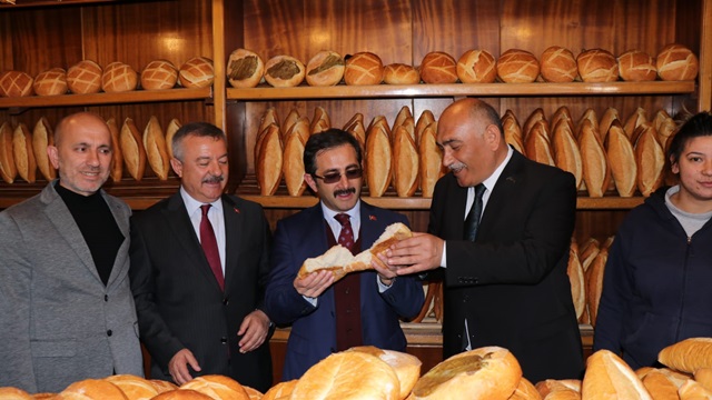 Aksu ve beraberindekiler ziyaret için girdikleri bir fırında vatandaşa sıcak ekmek ikram edip kendileri de yediler.